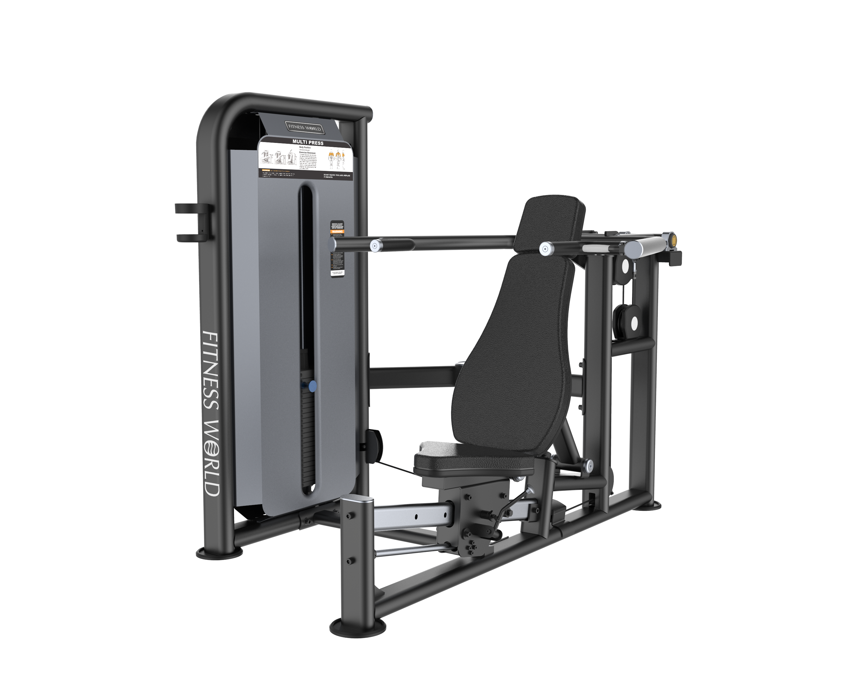 The Pro Clubline Series Multi Press realizes the integration of the functions of the three machines into one. On this machine, the user can adjust the pressing arm and seat on the machine to perform bench press, upward oblique press and shoulder press. The seat and back pad have been ergonomically optimized for better support and comfort. And comfortable oversized handles in multiple positions, combined with the simple adjustment of the seat, allow users to easily sit in position for different exercises.